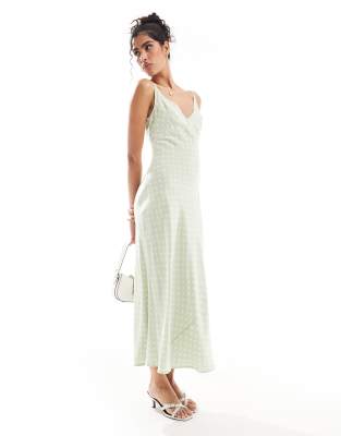 ASOS DESIGN High Apex Spun Midi Dress In Sage Based Spot-multi