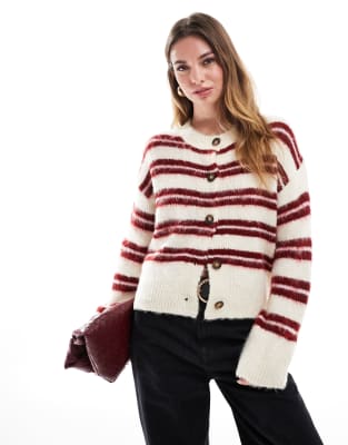 Cardigan by ASOS DESIGN For your knitwear needs Stripe design Crew neck Button placket Drop shoulders Regular fit