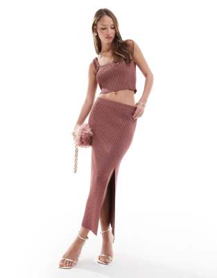 ASOS DESIGN Knit Midi Skirt With Side Split In Metallic Yarn In Brown - Part Of A Set