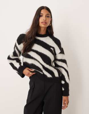 Cardigan by ASOS DESIGN Crew neck Zebra print Drop shoulders Long sleeves Ribbed trim Oversized fit