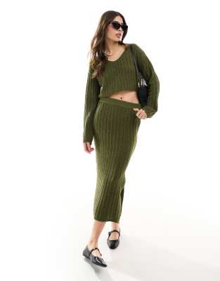 ASOS DESIGN Knit V Neck Cropped Sweater In Open Stitch In Olive - Part Of A Set-green