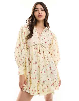 Jumpsuits & Rompers by ASOS DESIGN Floral design V-neck Button placket Blouson sleeves Lace inserts Regular fit