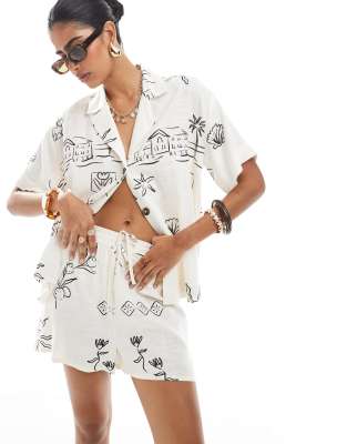 ASOS DESIGN Linen Blend Short Sleeve Shirt Set In Multi