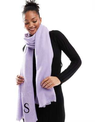 ASOS DESIGN Monogram Raw Edge Scarf With S Initial In Lilac-purple