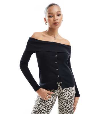 ASOS DESIGN Off-shoulder Button Down Top In Black