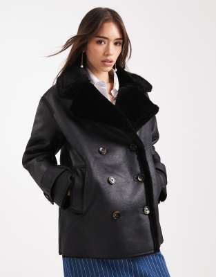 Coats & Jackets by ASOS DESIGN Faux-fur collar and lining Button placket Side pockets Oversized fit