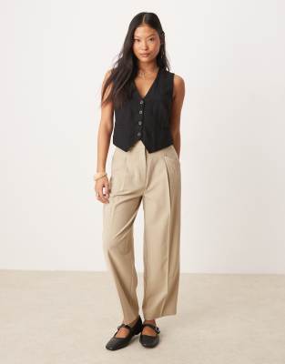 ASOS DESIGN Petite Tailored Barrel Pants In Neutral