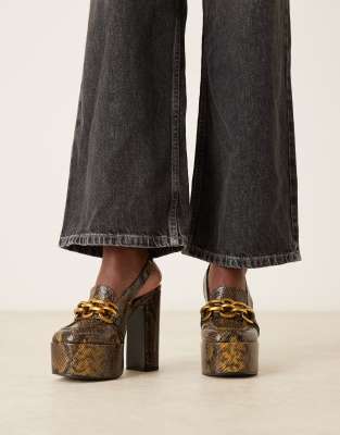 Shoes by ASOS DESIGN Animal print Slingback strap Chain trim Platform sole Very high heel