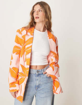 Blazers by ASOS DESIGN Tropical print Notch lapels Padded shoulders Open front Pocket details Relaxed fit
