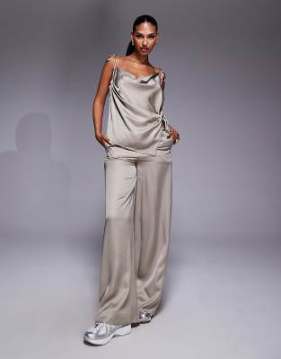 Pants & Leggings by ASOS DESIGN High rise Side zip closure Side pockets Wide leg