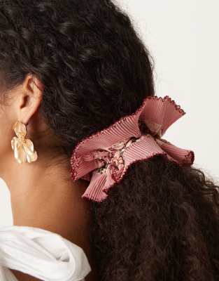 ASOS DESIGN Scrunchie With Ditsy Print And Contrast Frill Edge-pink
