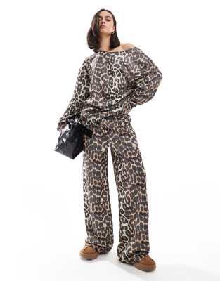 ASOS DESIGN Soft Wide Leg Pants In Leopard Print - Part Of A Set-multi