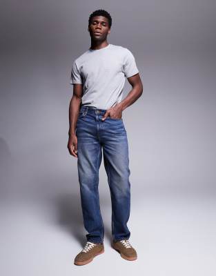 ASOS DESIGN Straight Leg Jeans With Vintage Tint In Dark Wash Blue