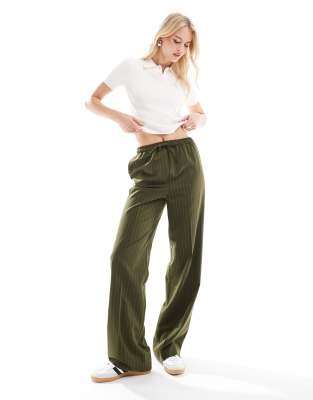 ASOS DESIGN Tall Tailored Pull On Pants In Olive Stripe-multi