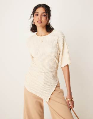 ASOS DESIGN Textured Asymmetric Cinched T-shirt In Yellow