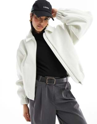 ASOS DESIGN Textured Bomber Jacket With Collar Detail In Ecru-white