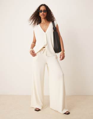 ASOS DESIGN Textured Knit Wide Leg Pants In White