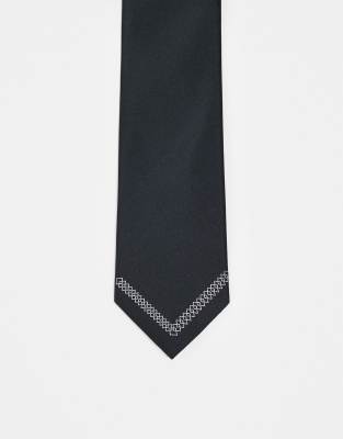 Accessories by ASOS DESIGN Keep it classy Embroidery detail Point-shaped ends Single keeper to reverse