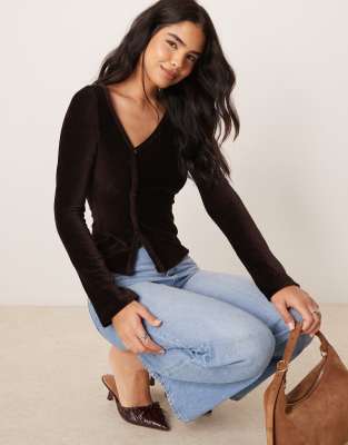 ASOS DESIGN Velvet Cord Asymmetric Button Through Top In Brown