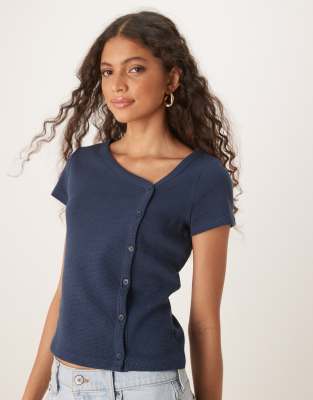 Top by ASOS DESIGN Plain design Asymmetric neck Short sleeves Button placket Slim fit