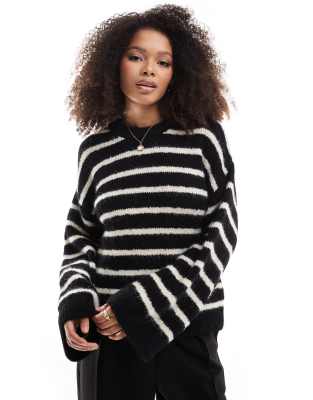 ASOS DESIGN Wool Blend Fluffy Wide Sleeve Knitted Sweater In Black And White Stripe-multi