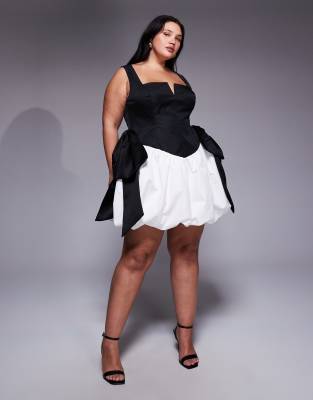 ASOS LUXE Structured Mini Bow Dress With Bubble Hem In Black