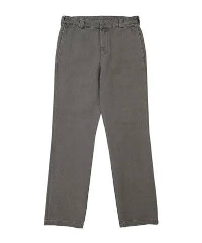 Belt loops, straight-leg trousers, with a concealed zipper placket.
