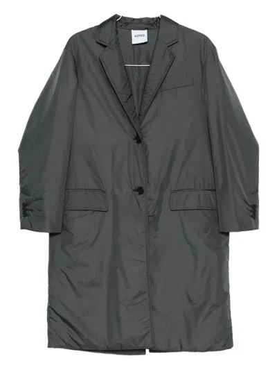 grey button fastening front flap pockets long sleeves buttoned cuffs notched lapels