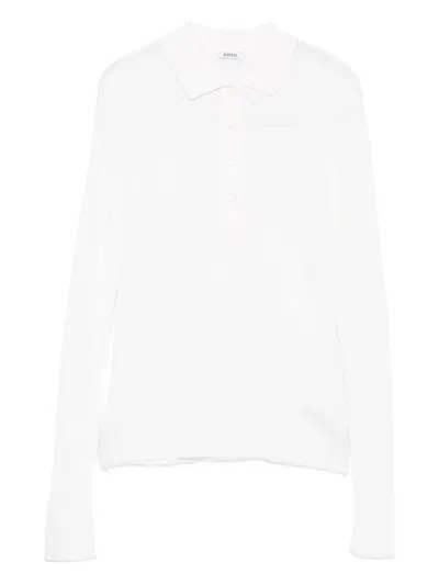 white ribbed knit button fastening long sleeves polo collar