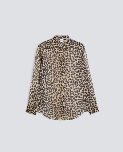 CAMICIA IN CHIFFON SETA STAMPA LEOPARDO, LUNGHEZZA CM 75 COLLO CLASSICO CAMICERIA, ALLACCIATURA ANTERIORE ASOLE E BOTTONI, MANICA LUNGA CON POLSO, LEGGERMENTE SCIANCRATA E STONDATA AL FONDO. VESIBILITÀ REGOLARE.