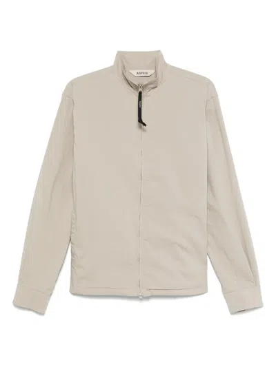 light beige front two-way zip fastening two side welt pockets stand-up collar long sleeves