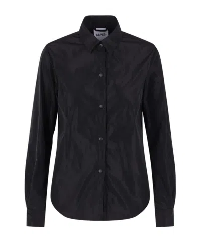 ASPESI Long Sleeved Press-stud Overshirt In Black