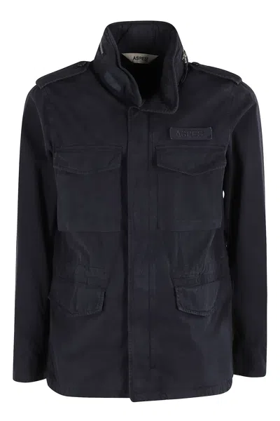 ASPESI Minfield Jacket With Concealed Hood And Adjustable Features In Blue