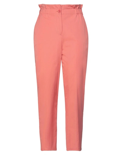 plain weave, basic solid color, no appliqués, high waisted, regular fit, tapered leg, button, zip, multipockets , Color: Salmon pink , Size: 8