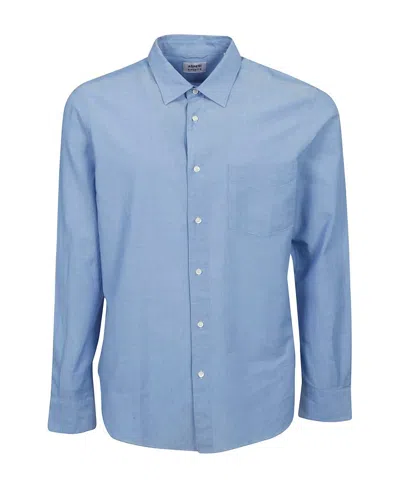 Aspesi shirt made of light blue cotton denim. Featuring a classic collar, button closure, long sleeves with buttoned cuffs, a chest patch pocket, and a rounded hem.