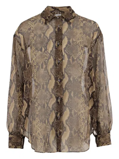 Crafted by Aspesi, this luxurious silk shirt showcases a captivating all-over python print, epitomizing sophistication and modernity. Featuring a classic collar, long sleeves with buttoned cuffs, and a contemporary curved hem, it effortlessly transitions from day to night. Made in Italy from 100% silk, it promises a lightweight feel and exquisite drape.- 100% silk - Made in Italy