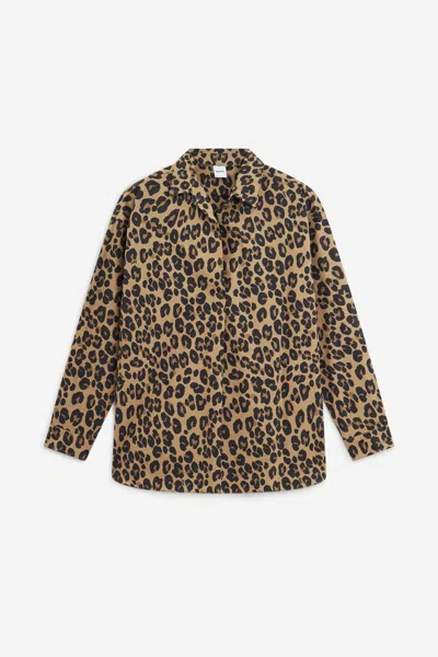 Shirt in Animalier cotton, long sleeves, classic collar, front buttoning, button cuffs, curved hem