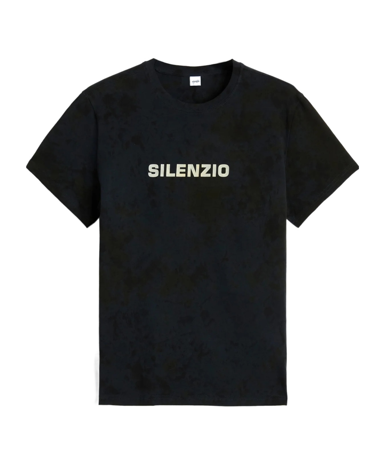 Short-sleeved crew-neck T-shirt made of pure cotton jersey and featuring a -SILENZIO- print on the front and a distinctive paintball-effect treatment. Finishing the design is Aspesi's flag label on the side. Regular fit.