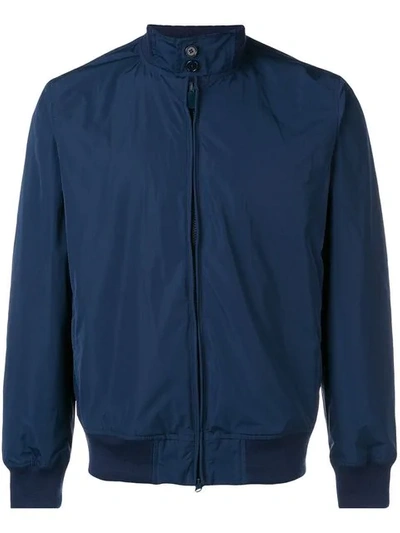 Blue zip-up bomber jacket from Aspesi featuring a funnel neck, a front zip fastening, long sleeves, a ribbed hem and cuffs and front pockets.