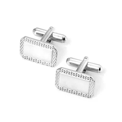 Sterling Silver Plated Engraved Edge Rectangular Cufflinks In Metallic