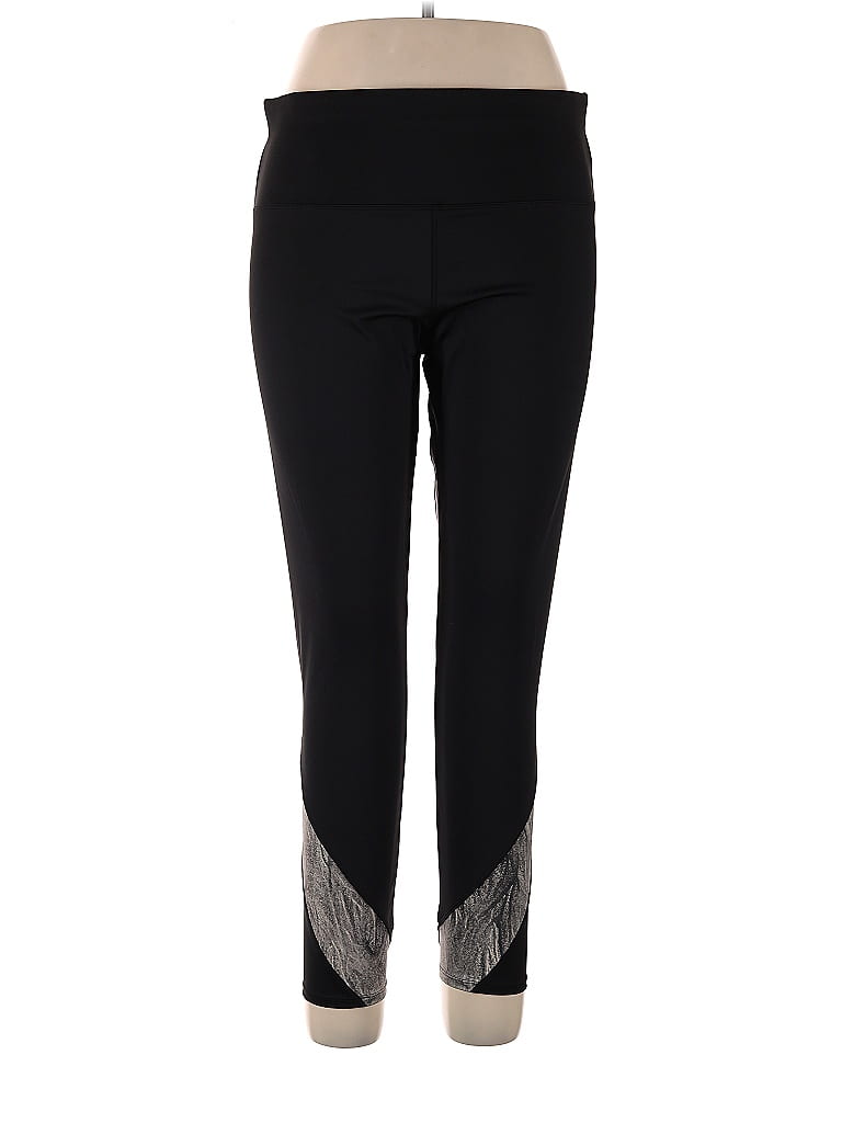 Assorted Brands Active Pants, Size: X-Large. Item Details: Black, Chevron/Herringbone Pattern, Skinny Leg, Cropped, Kick Flares, Mid/Reg Rise, Women's Activewear, Polyester/Spandex