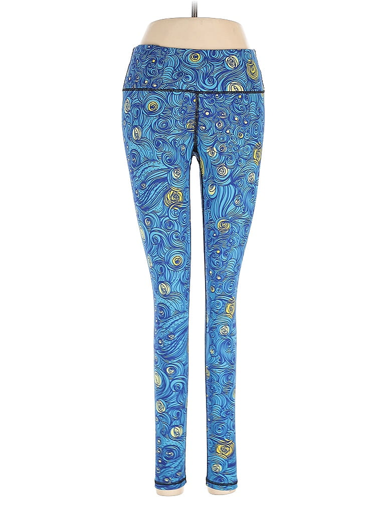 Assorted Brands Active Pants, Size: Medium. Item Details: Blue, Print Pattern, Skinny Leg, Cropped, High Rise, Women's Activewear, Polyester/Spandex