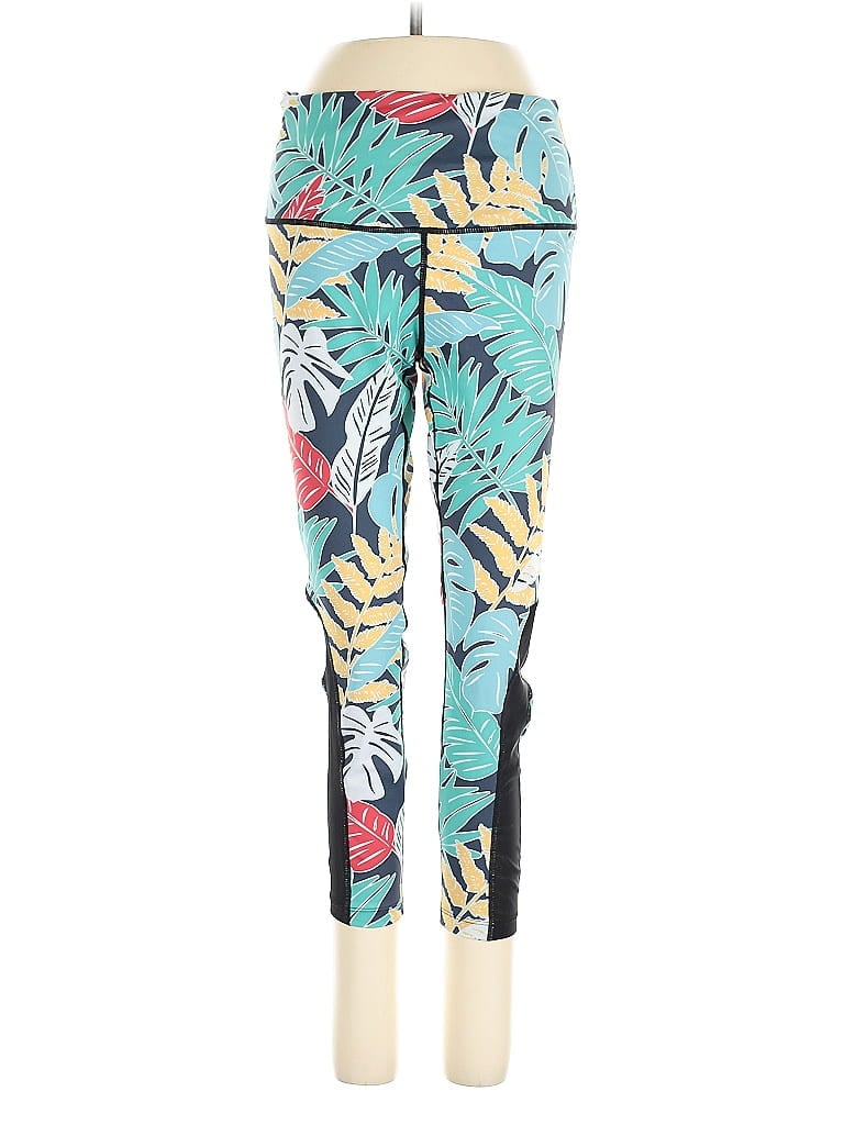 Assorted Brands Active Pants, Size: Small. Item Details: Blue, Tropical Pattern, Skinny Leg, Capri, Low Rise, Women's Activewear, Polyester/Spandex