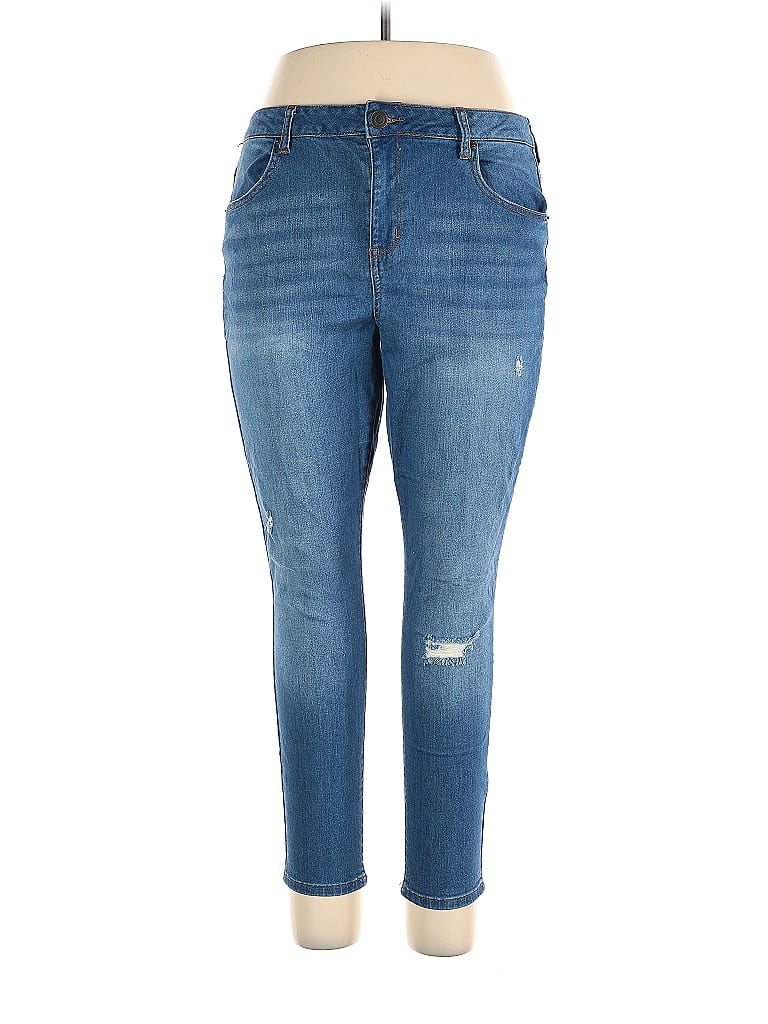 Assorted Brands Jeans, Size: 17. Item Details: Blue, Hearts Pattern, Distressed Wash, Skinny Leg, Regular, High Rise, Junior Bottoms, Cotton/Rayon/Polyester