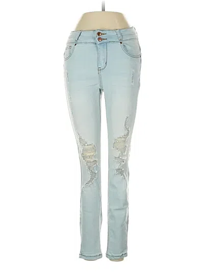 Assorted Brands Jeans, Size: 26. Item Details: Blue, Hearts Pattern, Light Wash, Skinny Leg, Cropped, Harem, Mid/Reg Rise, Women's Bottoms, 100% Polyester