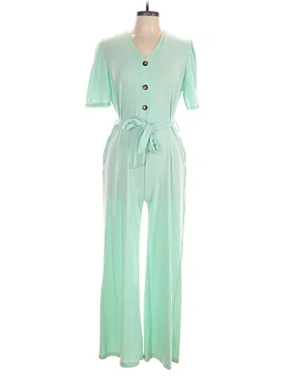 Assorted Brands Jumpsuit, Size: Large. Item Details: Blue, Solid Pattern, Crew Neck, Short Sleeve, Ruched, Women's Dresses