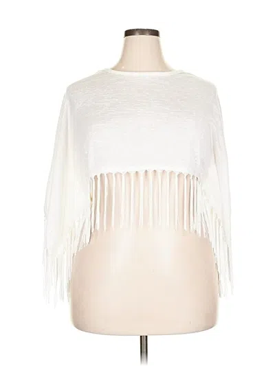 Assorted Brands Poncho, Size: 2X-Large. Item Details: White, Scoop Neck, Short Sleeve, Fringe, Women's Sweaters & Sweatshirts