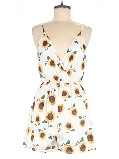 Assorted Brands Romper, Size: Medium. Item Details: White, Print Pattern, Plunge Neckline, Straight Leg, Sleeveless, Women's Dresses, 100% Polyester