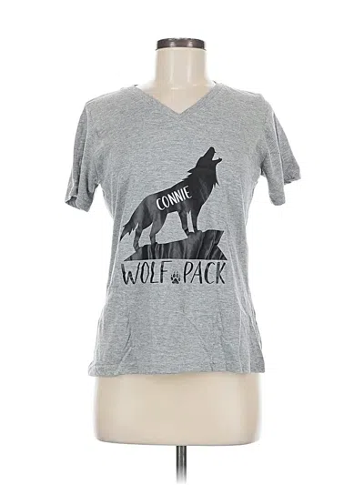 Assorted Brands Short Sleeve T Shirt, Size: Medium. Item Details: Gray, Print Pattern, V Neck, Short Sleeves, Glitter, Women's Tops, Cotton/Polyester