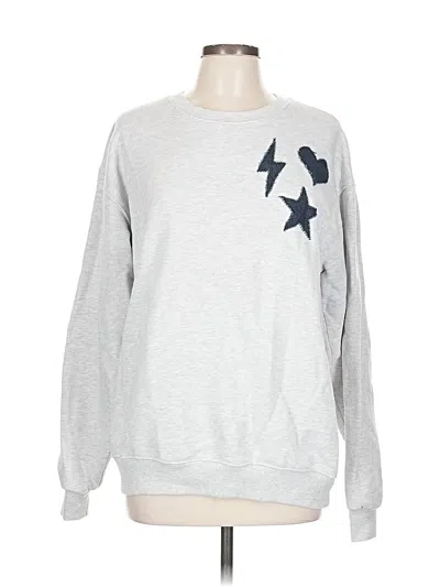 Assorted Brands Sweatshirt, Size: Large. Item Details: Silver, Stars Pattern, Crew Neck, Long Sleeve, Women's Tops, Polyester/Cotton